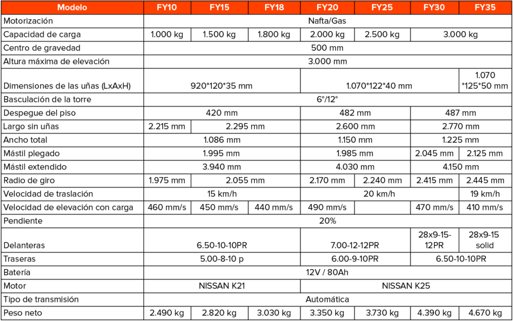 Autoelevador nafta FY – Serie liviana